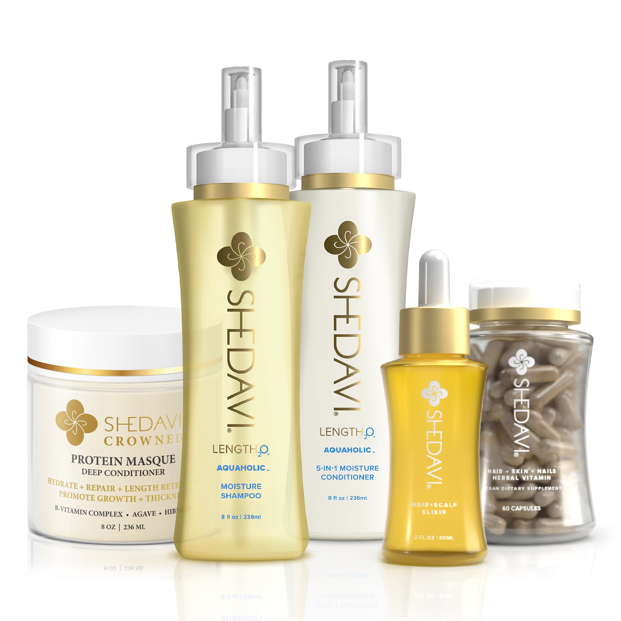 For best results: Follow with Shedavi Length₂O™ Aquaholic™ 5 in 1 Moisture Conditioner.